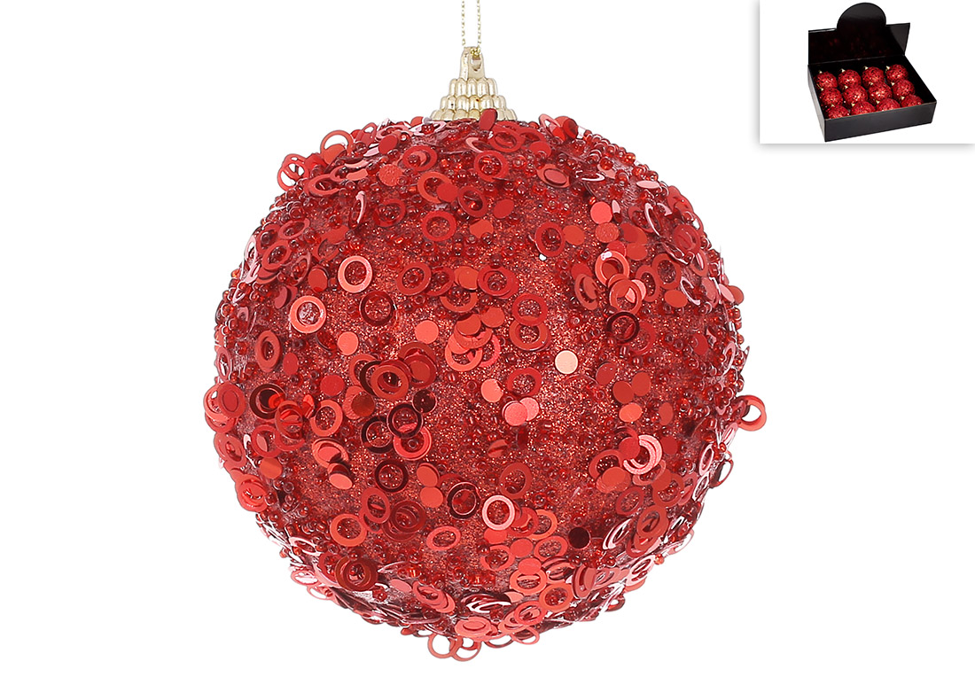 Ялочий шар з декором з гліттера 10см, колір - червоний