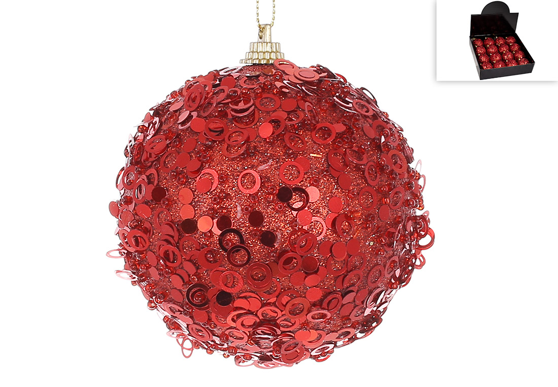 Ялочий шар з декором з гліттера 8см, колір - червоний