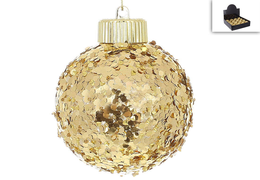 Ялинкова куля з декором із гліттера 8см, колір - золото
