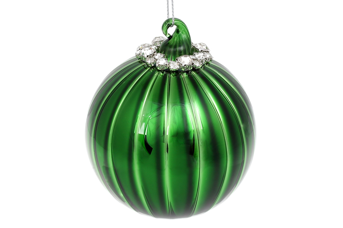 Ялинкова куля з декором з каміння, 8см, колір - смарагдовий зелений