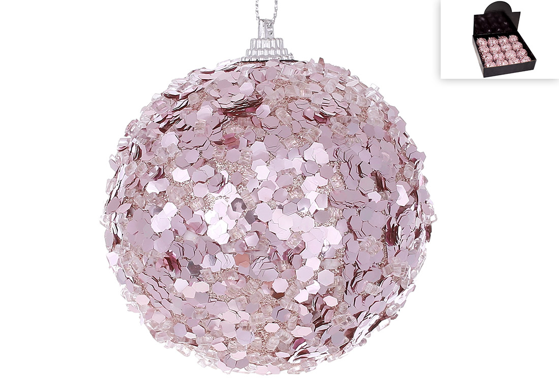 Ялинкова куля з декором з великого гліттера 8см, колір - рожевий