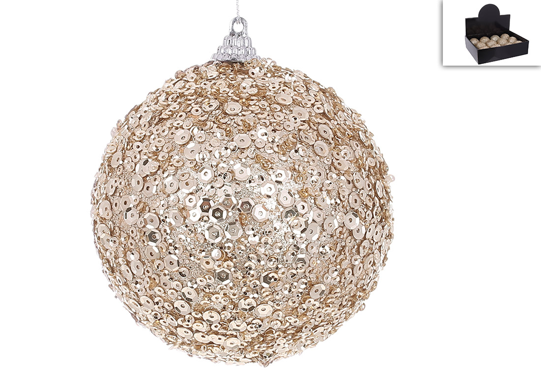 Ялинкова куля з декором з паєток 10см, колір - шампань