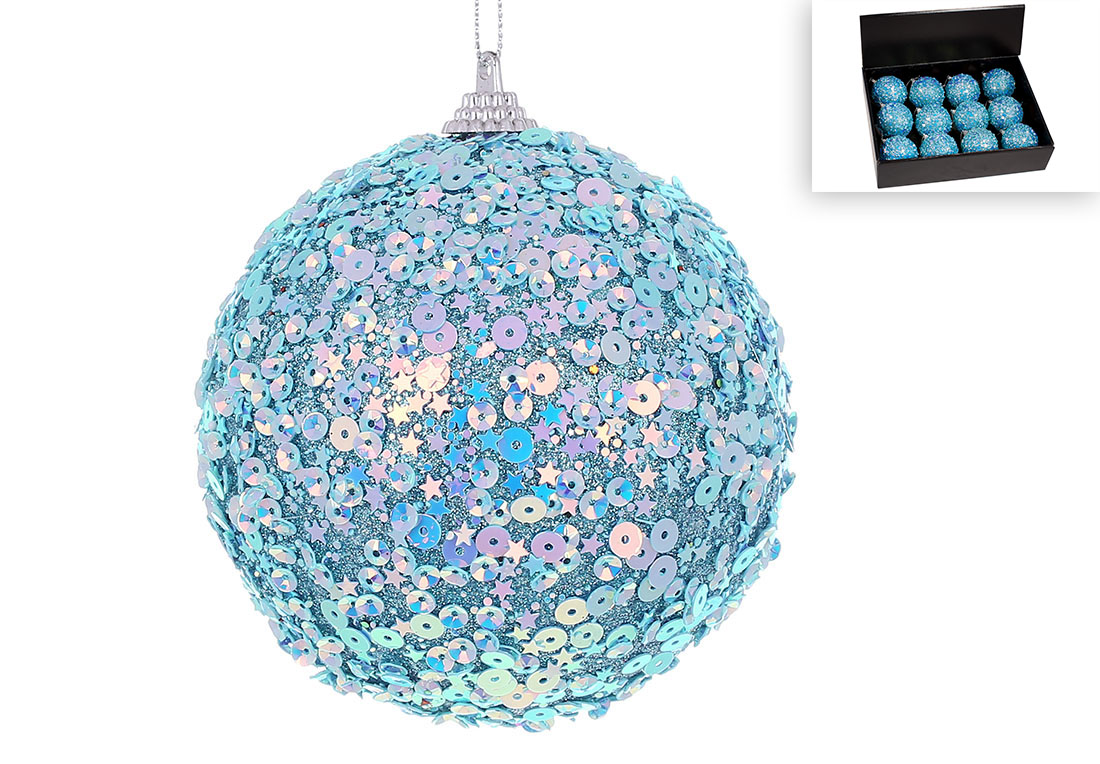 Ялинкова куля з декором з паєток 8см, колір - блакитний