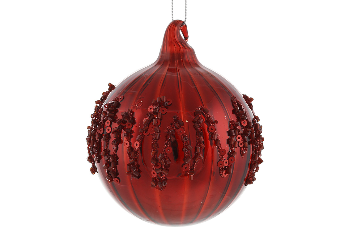 Ялинкова куля з декором з паєток 8см, колір - червоний