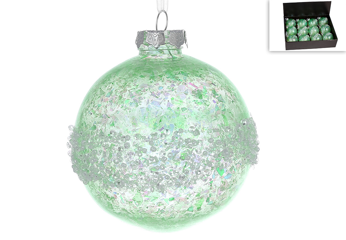 Ялинкова куля з декором з паєток та бісеру 8см, колір- зелений