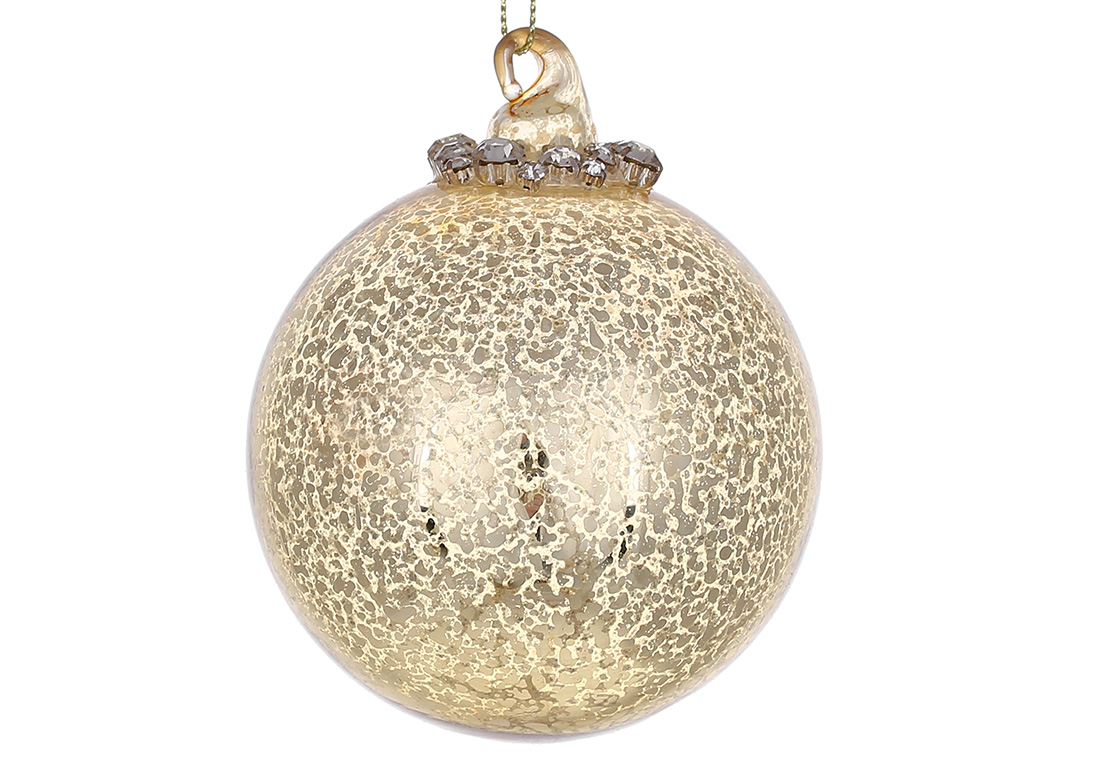 Ялинкова куля з декором зі страз 8см, колір - золото антик.