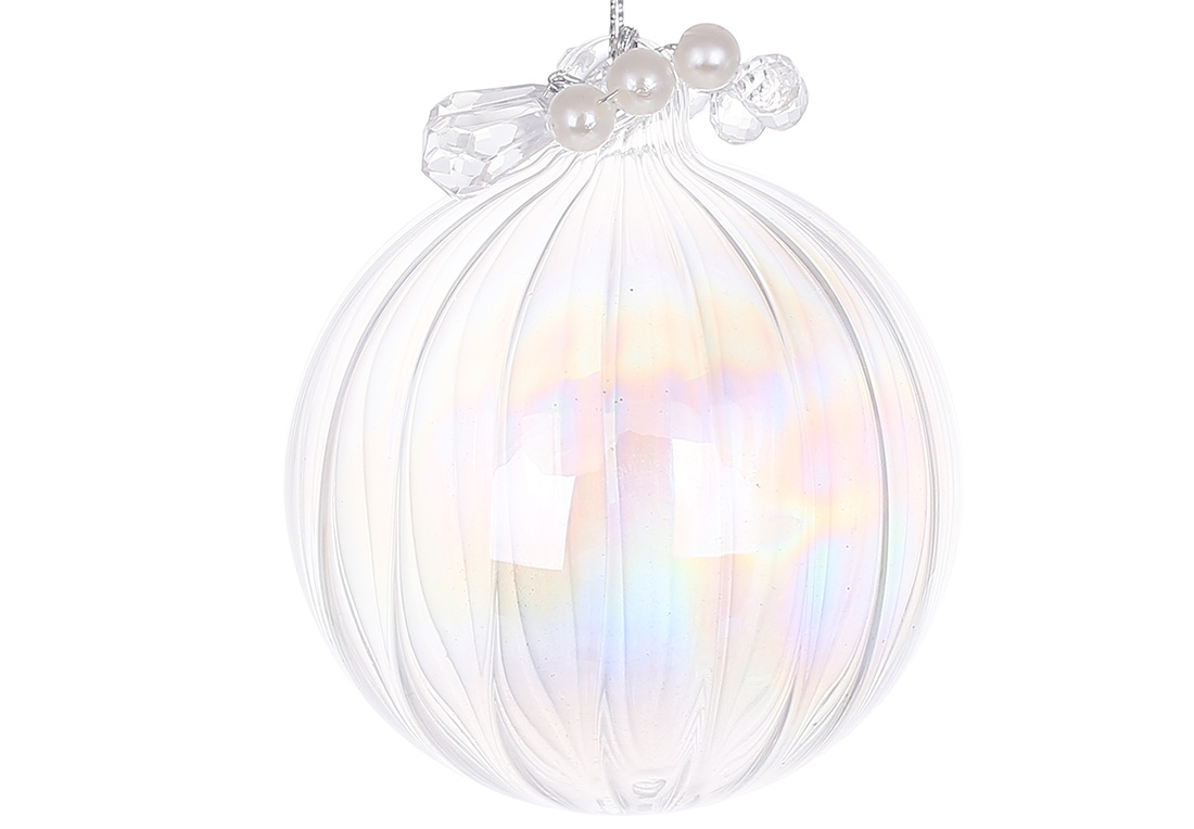 Ялинкова куля з декором із перлів та кристалів 8см, колір - прозорий перламутр.