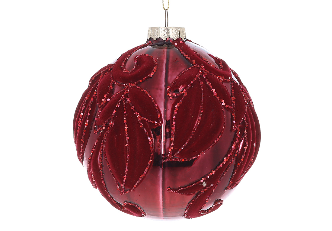 Ялинкова куля з флористичним візерунком з оксамиту 10см, колір - червоний