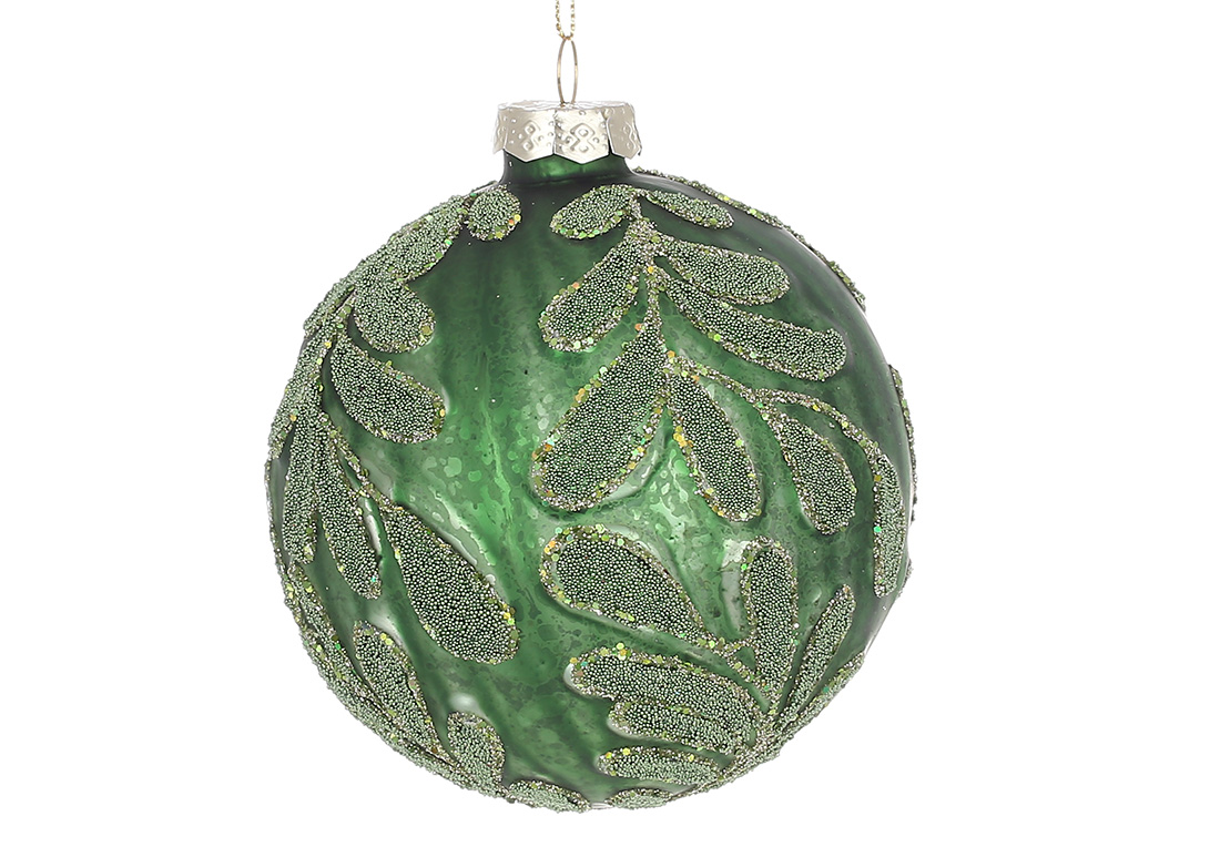 Ялинкова куля з флористичним візерунком з бісеру 10см, колір - зелений антик