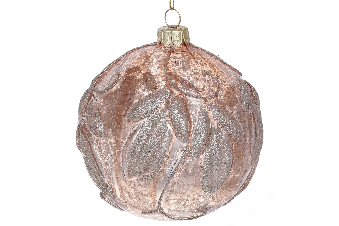 Ялинкова куля з гліттерним декором 10см, колір - карамель антик