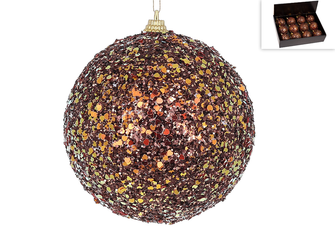 Ялинкова куля з гліттером 8см, колір - коричневий