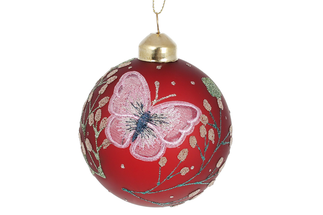 Ялинкова куля з мереживним декором "Метелик" 8см, колір - червоний