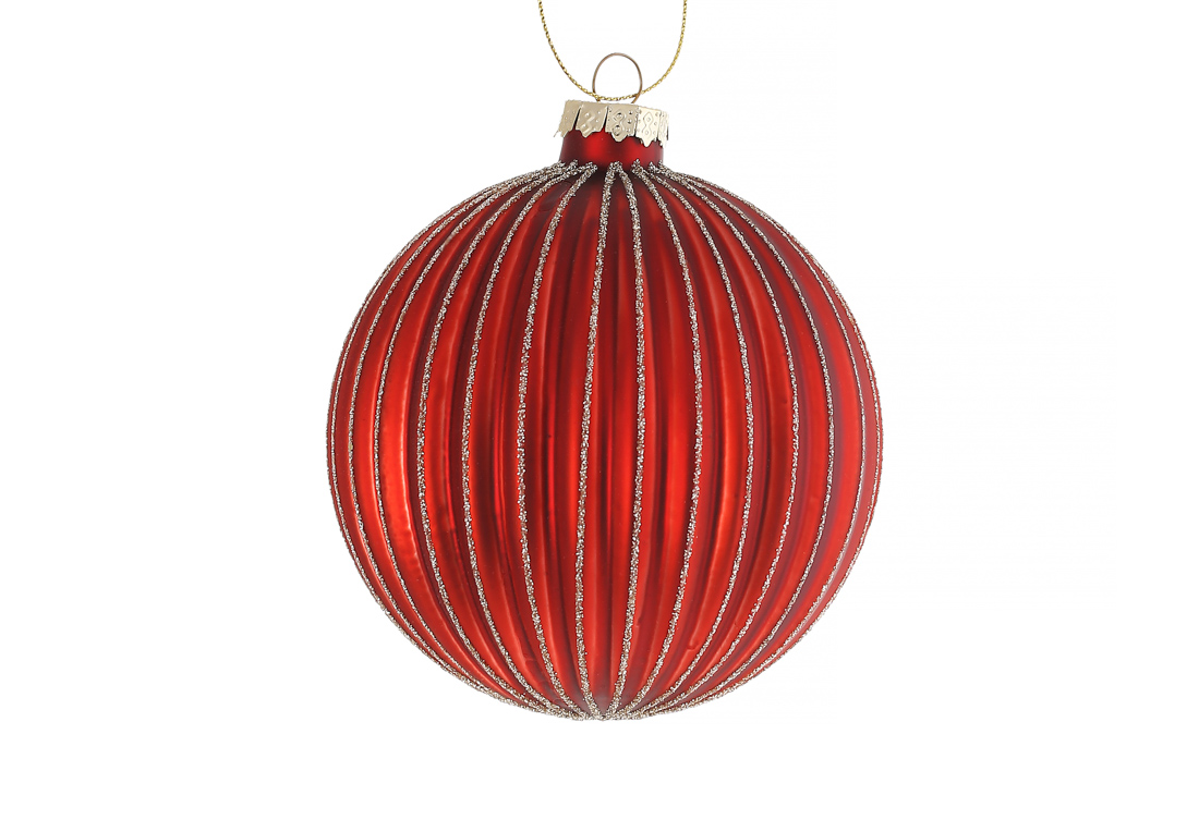 Ялинкова куля з матовим покриттям та глітерним декором 10см, колір - червоний із золотом