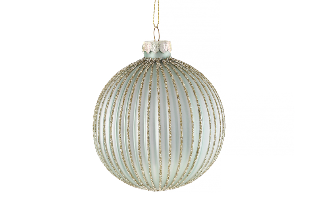 Ялинкова куля з матовим покриттям і глітерним декором 8см, колір - м'ятний