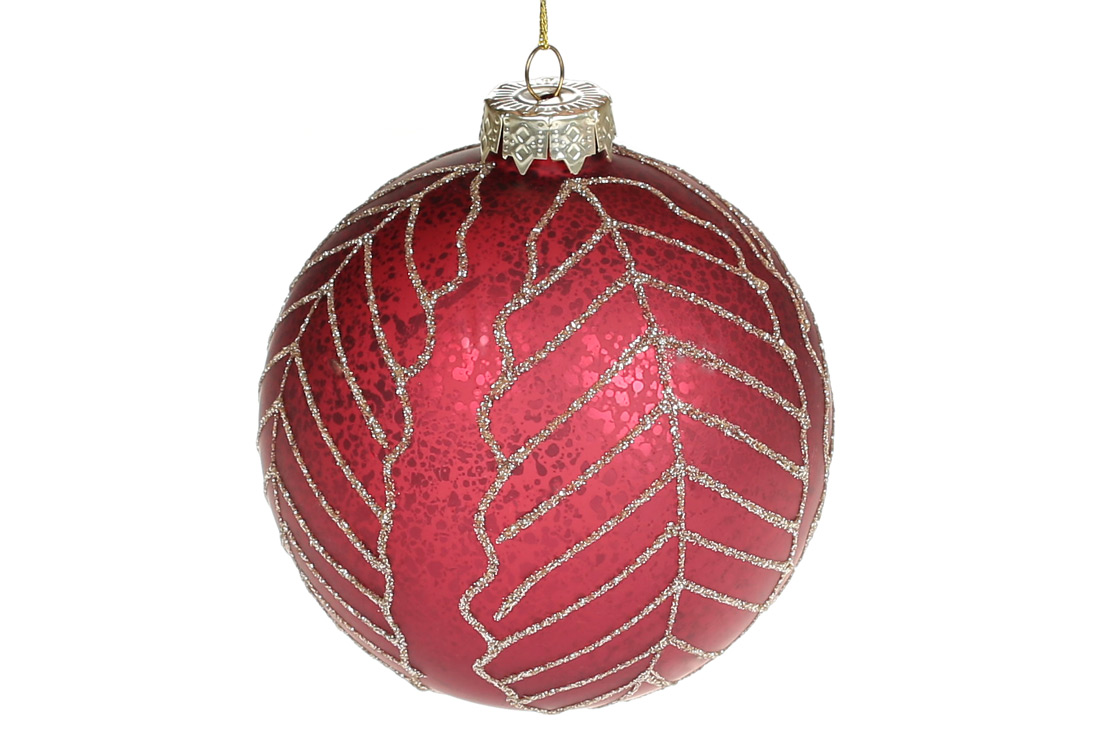 Ялинкова куля з матовим покриттям та малюнком з гліттера, 10см, колір - червоний антик