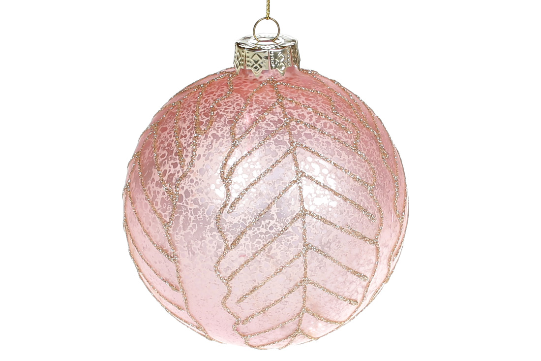 Ялинкова куля з матовим покриттям та малюнком з гліттера, 10см, колір - рожевий антик