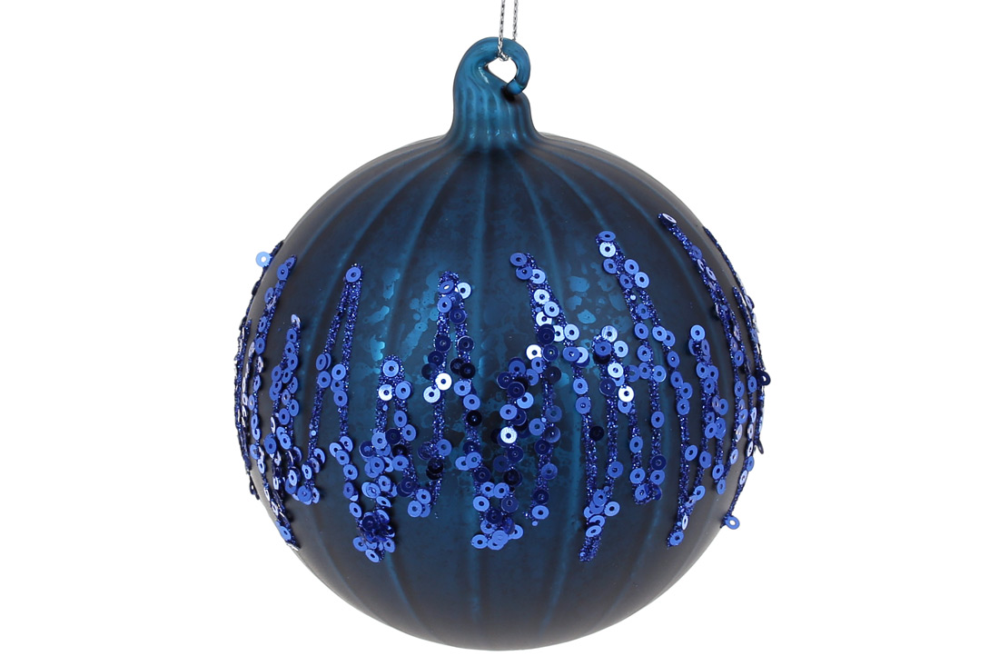 Ялинкова куля з матовим покриттям і візерунком з паєток, 10см, колір - індиго