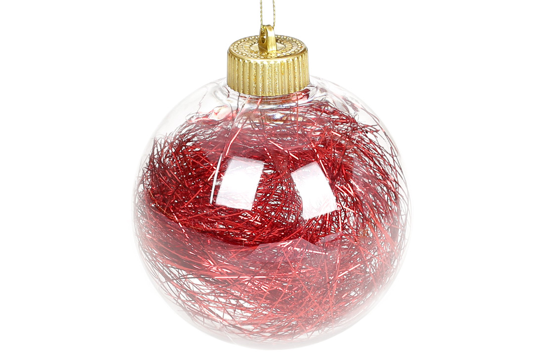 Ялинкова куля з мішурою всередині 10см, колір - червоний