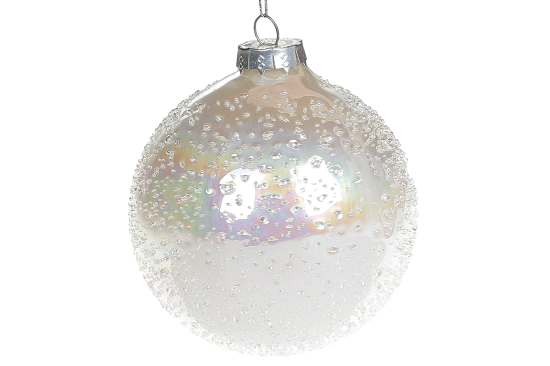Ялинкова куля з покриттям лід, 10см, колір - перлинний білий