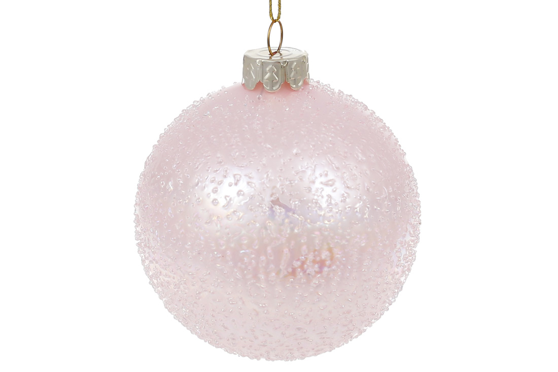 Ялинкова куля з покриттям лід, 8см, колір - рожевий перламутр