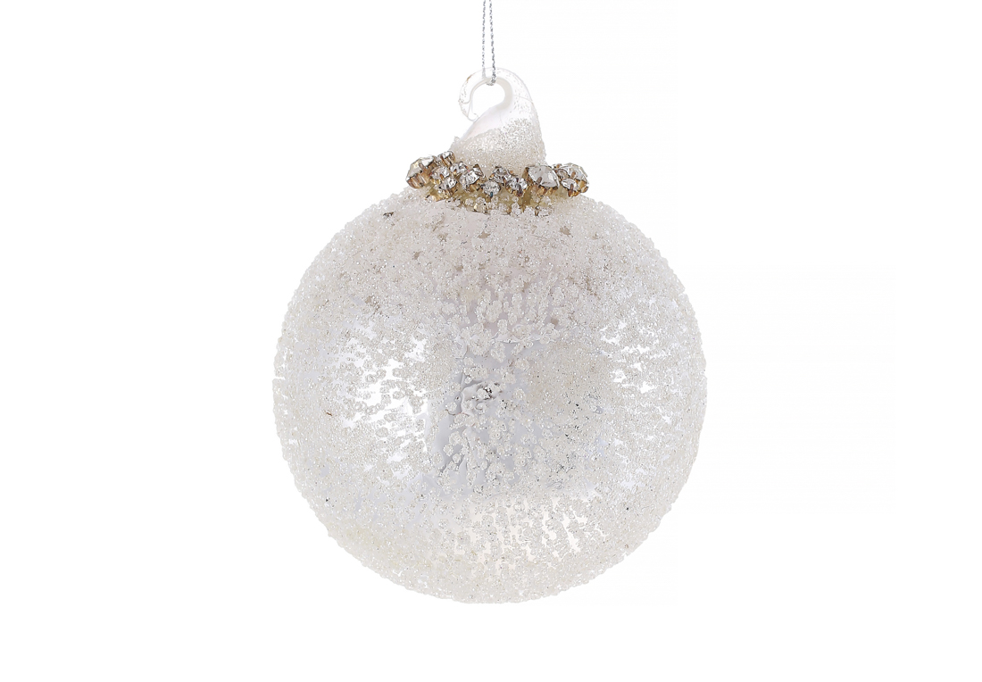 Ялинкова куля з покриттям "лід" та декором зі страз 10см, колір - срібло