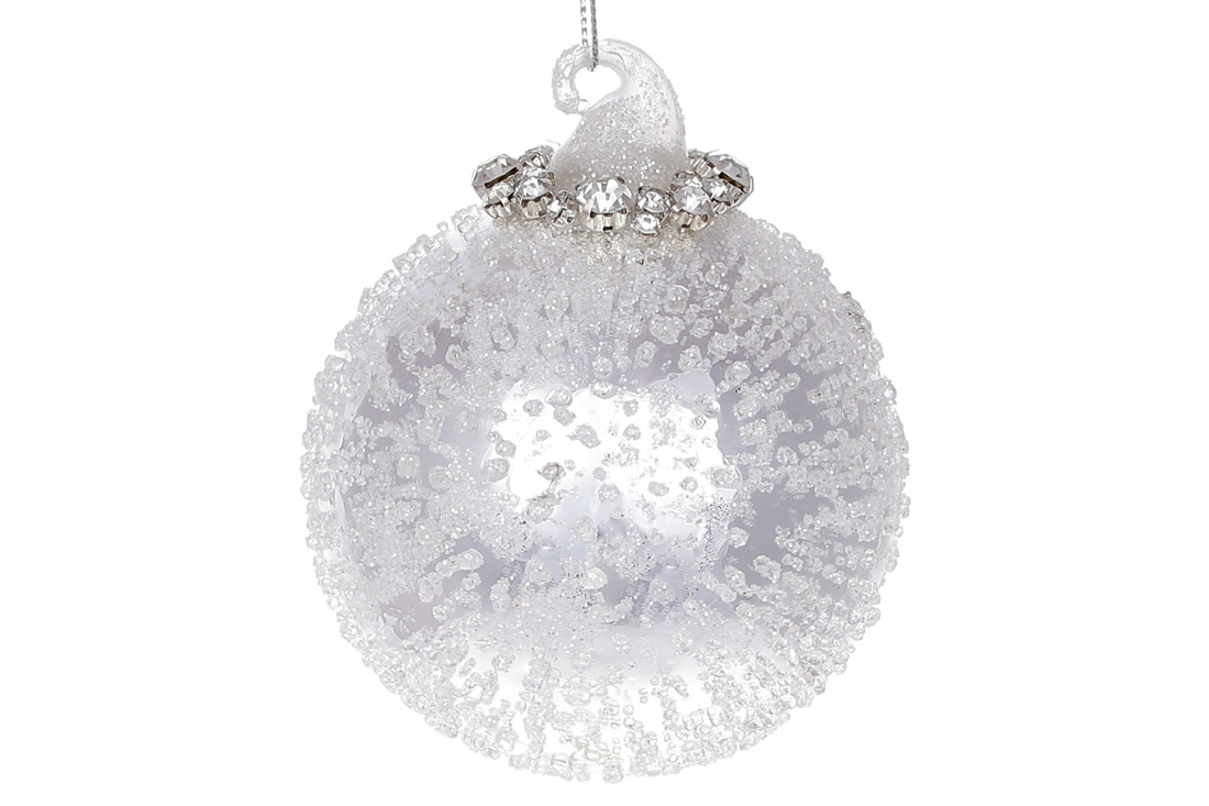 Ялинкова куля з покриттям "лід" та декором зі страз 8см, колір - срібло