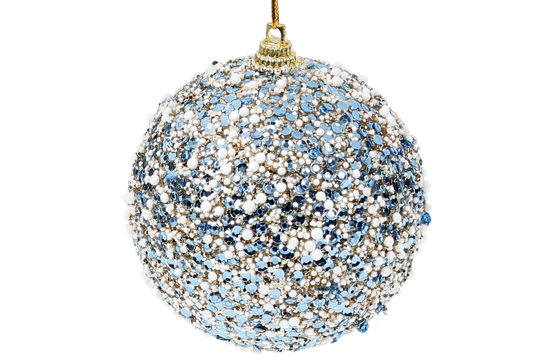 Ялинкова куля з присипкою з бісеру 8см, колір - синій