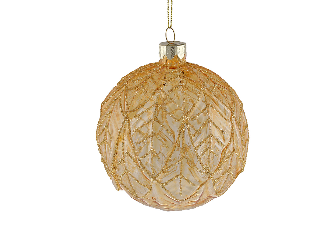 Ялинкова куля з рельєфним малюнком Листя 10см, колір - золотистий