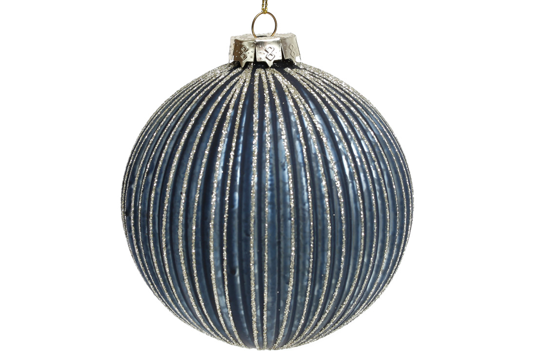 Ялинкова куля з рельєфом та декором з гліттера, 10см, колір - темно-синій антик