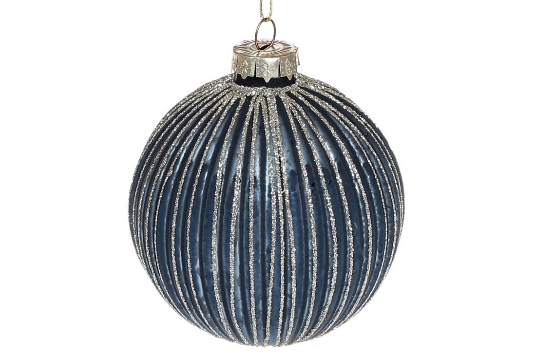 Ялинкова куля з рельєфом та декором з гліттера, 8см, колір - темно-синій антик