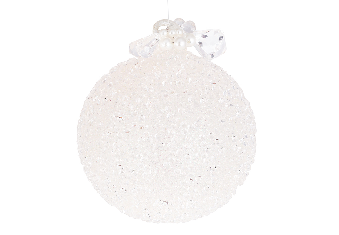 Ялинкова куля з цукровим покриттям з кристалами та перлами 10см, колір - ніжно-рожевий