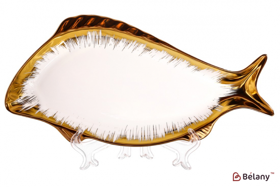 Фарфоровое блюдо для рыбы 35 см "Golden ", с золотом