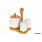 Фарфоровый набор для специй 16 см "Nagoya"солонка, перечница, салфетница на бамбуковой подставке