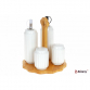 Фарфоровый набор для специй 16 см "Nouvelle"солонка, перечница, салфетница на бамбуковой подставке