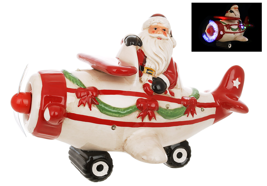 Фігура Санта на літаку: з LED-підсвічуванням, музикою Jingle Bells і пропелером що крутиться (3хАААА не входять до комплекту)19см
