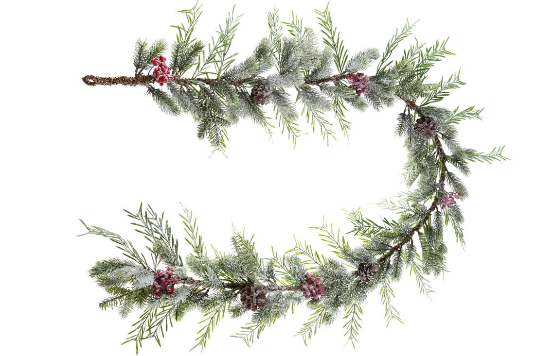 Гірлянда з хвої з декором з ягід та шишок з покриттям "лід", 190см