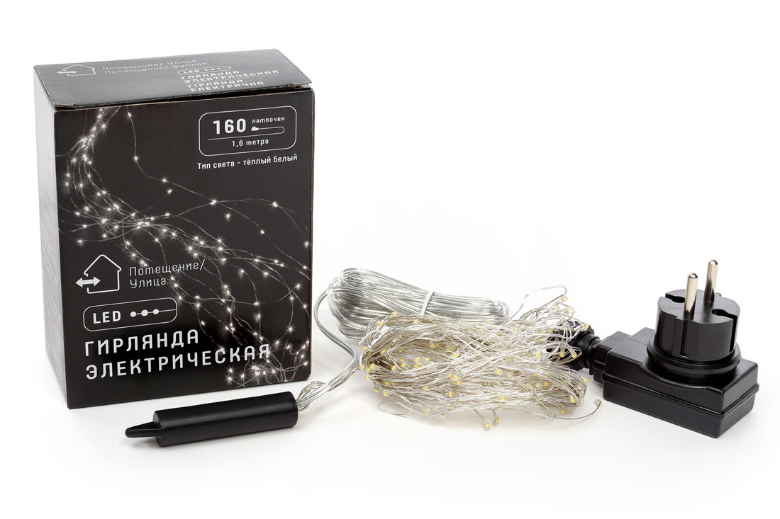 Гірлянда-пучок 160 міні-LED: 10 ліній по 1,6 метра, 16 діодів/нитка, колір - теплий білий, постійне світіння