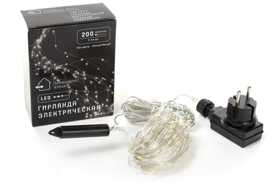 Гірлянда-пучок 200 міні-LED: 10 ліній по 2 метри, 20 діодів/нитка, колір - теплий білий, постійне світіння
