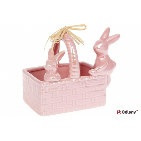 Кашпо (сахарница) кролики в корзинке 16 см " Magnificence", розовый