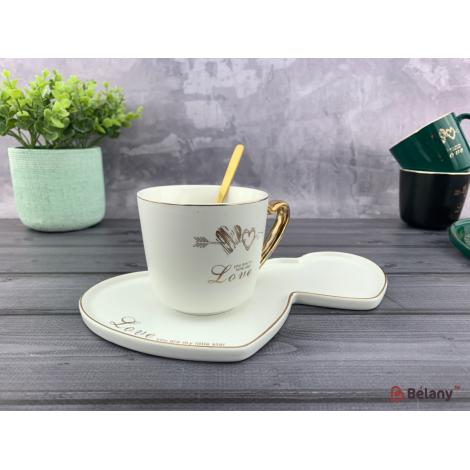 Керамическая чашка "Gold double heart" белая
