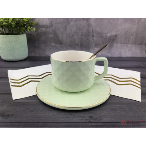 Керамическая чашка "Pretty" зеленая с блюдцем