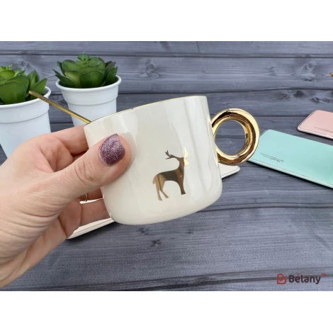 Cana Si Farfurioara Din Ceramica "animale" Crema