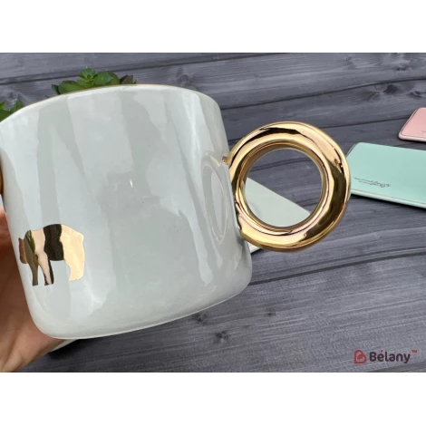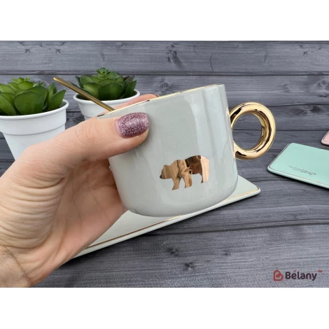 Ceașcă Și Farfurie Din Ceramică „Animale” Gri