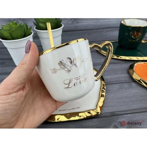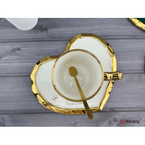 Pahar Si Farfurie Din Ceramica "deep Gold Heart" Alb