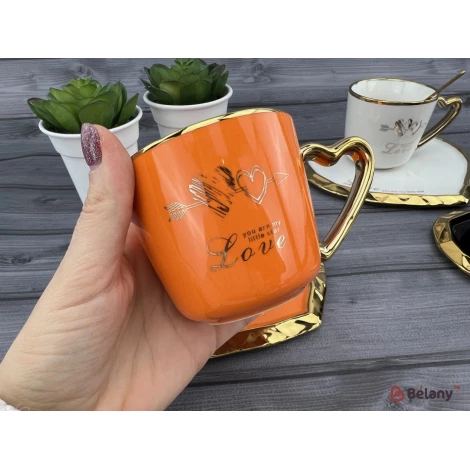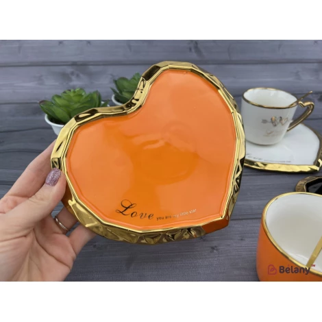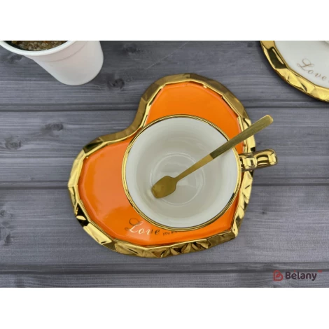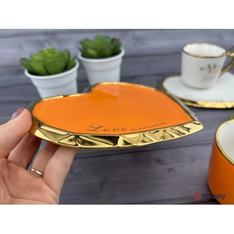 Ceașcă Și Farfurie Din Ceramică „Deep Gold Heart” Portocaliu