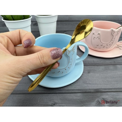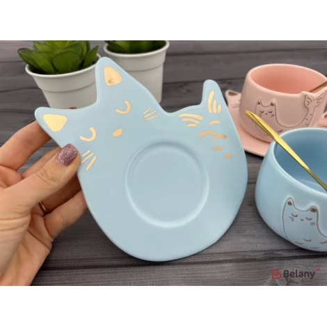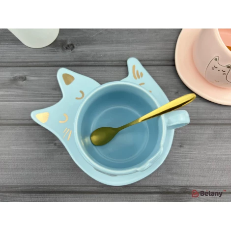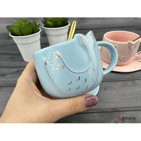 Cana Si Farfuria Din Ceramica "fishcat" Albastru
