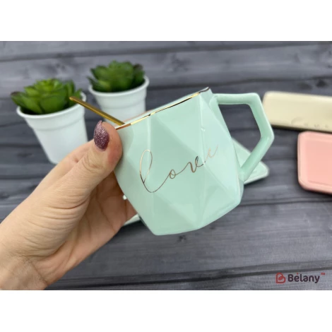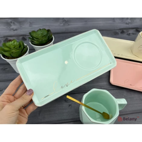 Cana Si Farfuria Din Ceramica "love It" Albastru