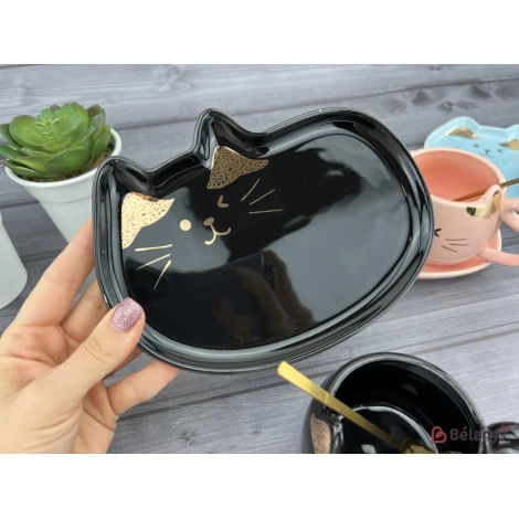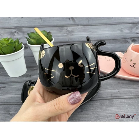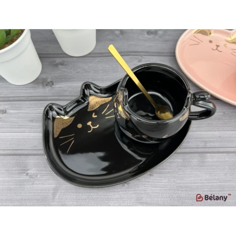 Cană Și Farfurie Din Ceramică „Urechi De Aur” Neagră