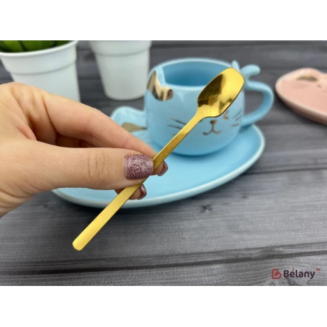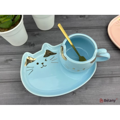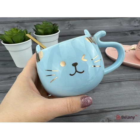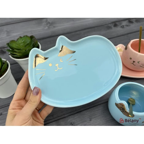 Pahar Si Farfurie Din Ceramica "urechi De Aur" Albastru