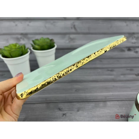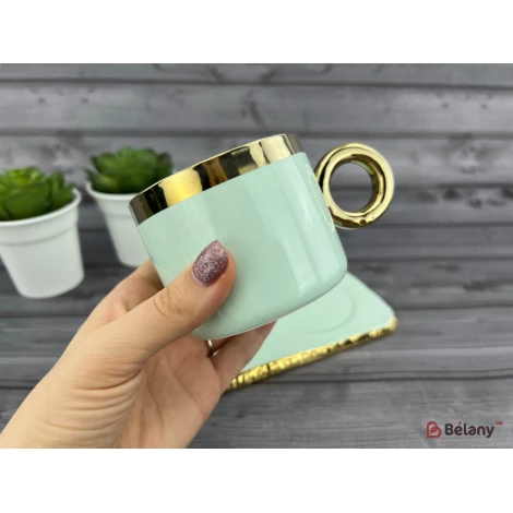 Pahar Si Farfurie Din Ceramica "gold Edge" Menta